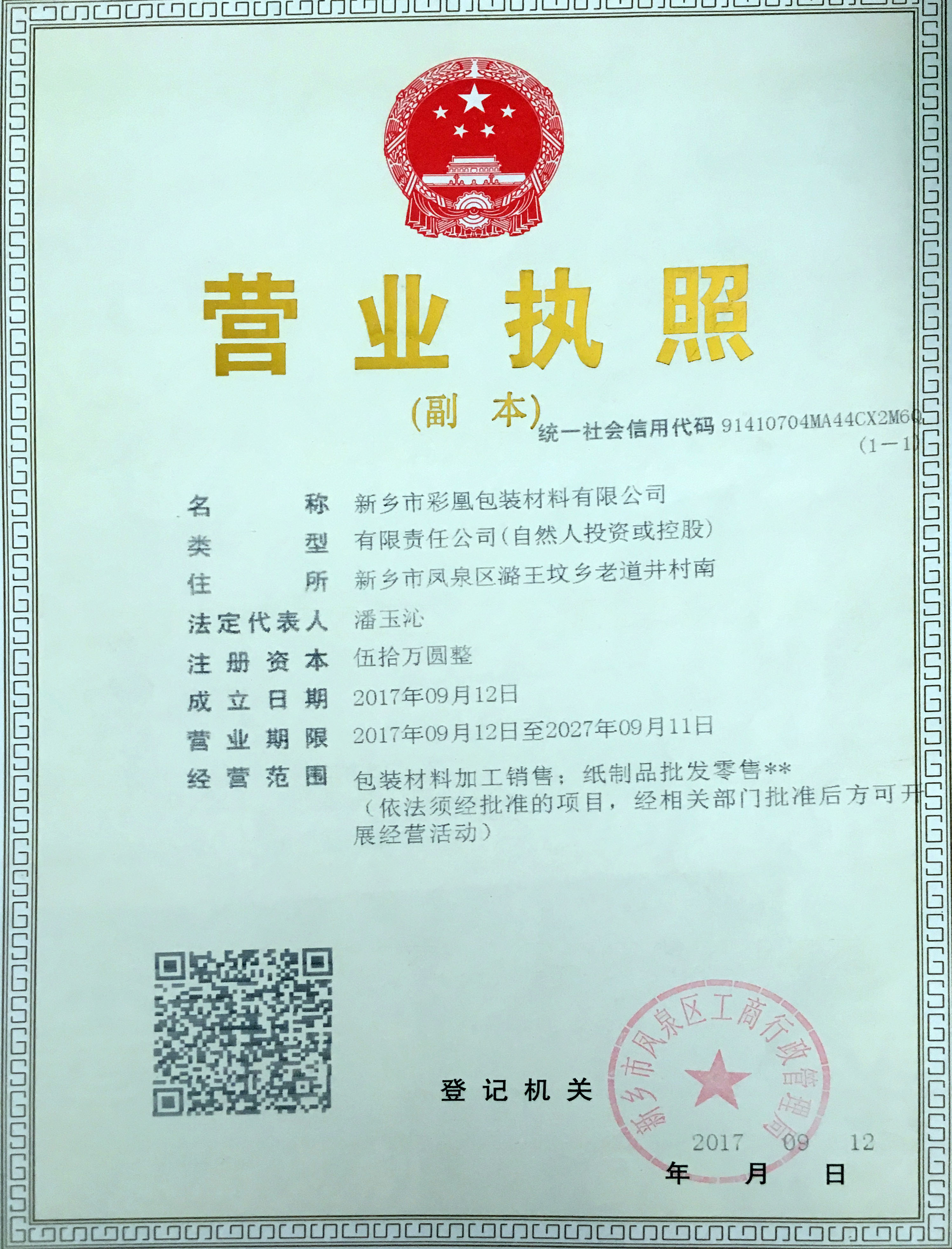 新鄉(xiāng)市彩凰包裝材料有限公司【官網(wǎng)】 地址:河南省新鄉(xiāng)市鳳泉區(qū) 聯(lián)系人:張經(jīng)理 手機(jī):15036625235